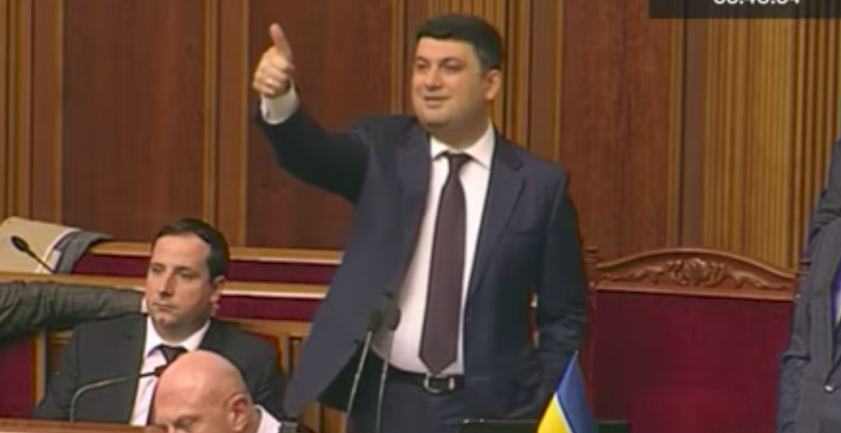 Гройсман показывал депутатам большой палец правой руки, подбадривая нажимать кнопки.