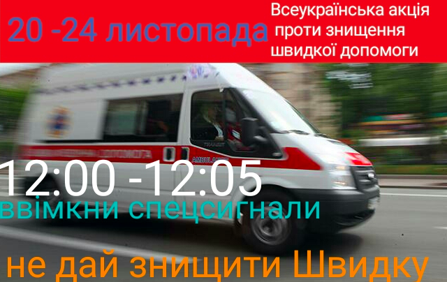 Вот уже третьи сутки подряд в Украине врачи скорой проводят сигнальный протест против реформы. Ровно в 12 часов дня они включают сирены и 5 минут сигналят, требуя не уничтожать скорую помощь.