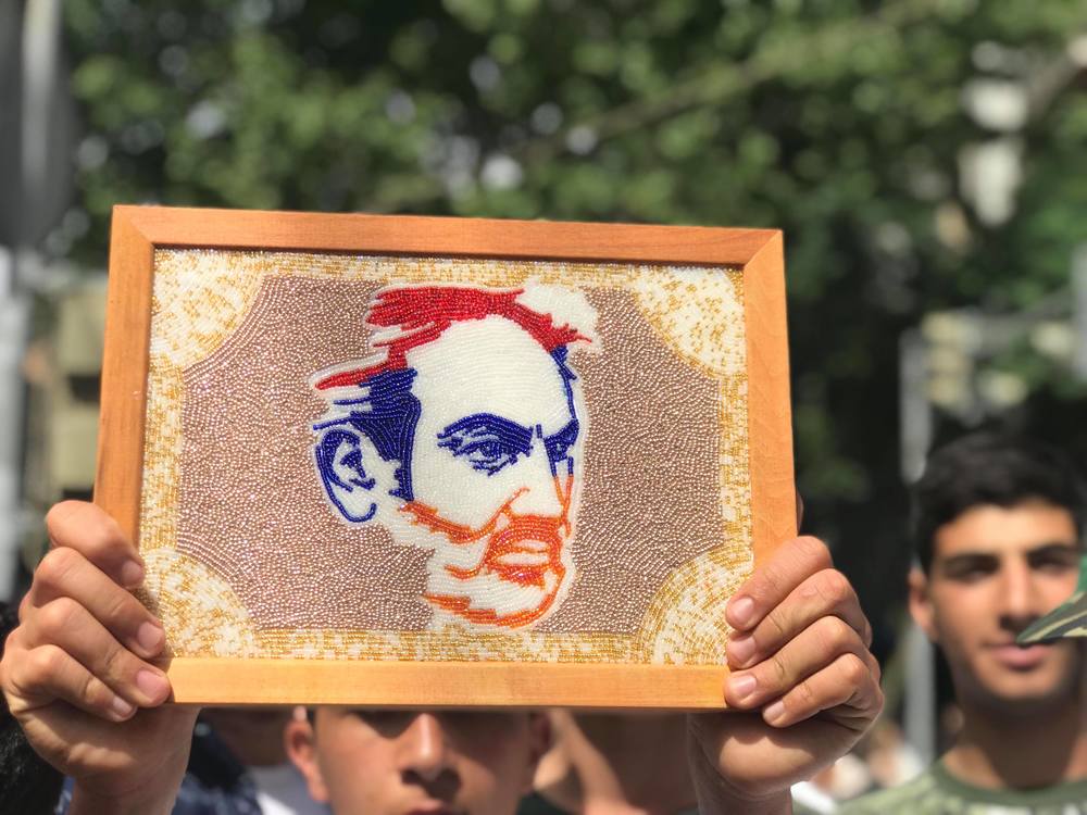Не заметить культ Пашиняна в Ереване невозможно. На рынках продаются футболки с его фотографиями, прохожие носят кепки, как у Никола – с надписью "духов", то есть "бесстрашно, с духом". На вернисаже в центре столицы продаются деревянные нарды, на которых вырезан портрет Никола, а курсант военного училища ходил с портретом Пашиняна, вышитым бисером.