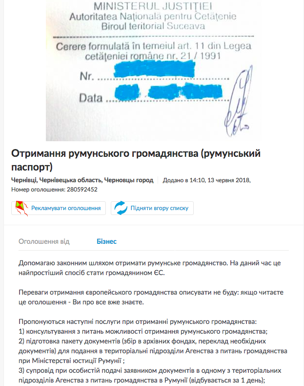 "Помогаю законным путем получить румынское гражданство. В настоящее время это самый простой способ стать гражданином ЕС", - такие предложения в сети не редкость.