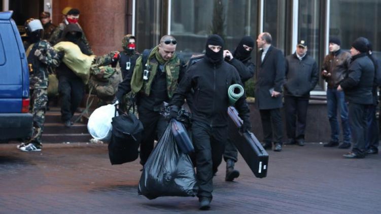 Впрочем, эти комментарии устроили далеко не всех. Например, снимавший процесс "выезда" "активистов" журналист Артем Шевченко (сегодня - спикер МВД Украины) уточнил у "правосеков", не винтовки выносят ли они в чехлах и характерных сумках.