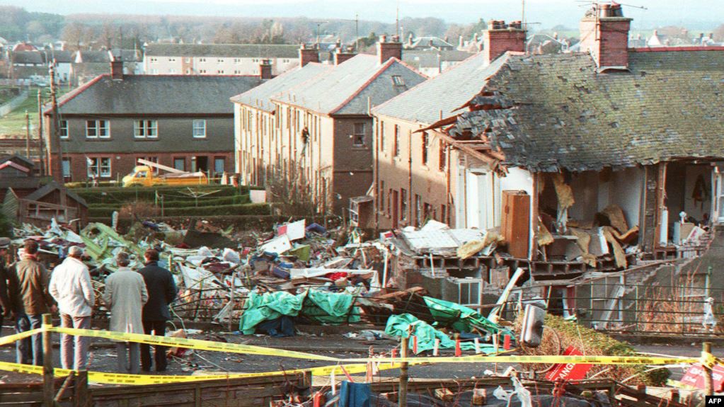 Эта катастрофа известна как трагедия в Локерби - это шотландская деревушка, на которую упал самолет. Тогда погибли 270 человек - 243 пассажира, 16 членов экипажа и 11 селян, которых убил взорвавшийся после падения лайнера бензобак.