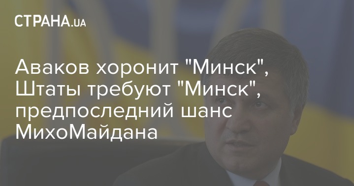 Министр внутренних дел Аваков выдвинул альтернативную Минским соглашениям программу присоединения Донбасса к Украине. Как сообщил министр, свою программу он изложил западным политикам, объявив Минские соглашения "мертвыми", поскольку их не признает никто в Украине.