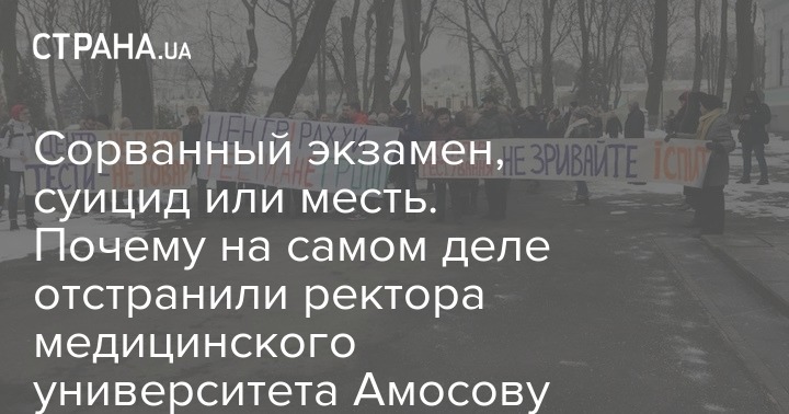 Но сама Амосова в комментарии "Стране" отрицает, что ее отстранение и самоубийство студентки могут быть как-то связаны. "Это, безусловно, трагедия, но это точно не причина моего отстранения. В тексте указа МОЗ о моем отстранении и назначении комиссии нет ни слова об этом ужасном событии. В беседе с государственным секретарем Министерства здравоохранения об этом тоже не было сказано ни слова. Если кто-то и говорит о связи между этими событиями, то это откровенная манипуляция".