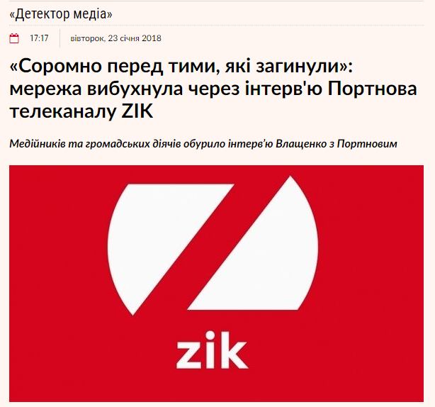 "Стыдно перед теми, кто погибли": Сеть взорвалась из-за интервью Портнова телеканалу ZIK" – "Детектор медиа" сделал подборку мнений политиков, блогеров и экспертов, увенчав его таким вот заголовком. Из 14 комментариев по теме – ни одного в поддержку канала ZIK. Хотя в Сети было множество мнений и в защиту этого интервью.