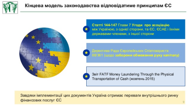Кроме того, соглашением об ассоциации с ЕС Украина приняла на себя обязательства по адаптации валютного законодательства к нормам и стандартам ЕС. Глава НБУ Яков Смолий говорит, что принятие закона “О валюте” как раз приблизит наше банковское законодательство к европейским канонам.