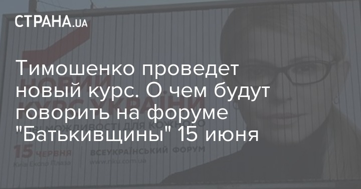 Партия Юлии Тимошенко "Батькивщина" организовывает 15 июня в Киеве большой форум "Новый курс Украины". В анонсе сказано, что его задачей является разработка стратегической программы развития для страны из трех базовых пунктов - новый общественный договор и экономический курс, а также "экосистема жизни человека".