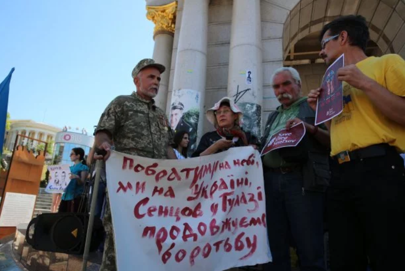 Сериков во время акции на Майдане в поддержку Олега Сенцова, источник фото: 24tv.ua