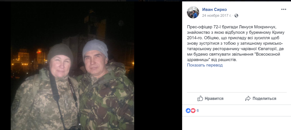 На другом фото Сериков позирует со спикером 72-й бригады Еленой Мокренчук, комментарий которой получило издание "Обозреватель".