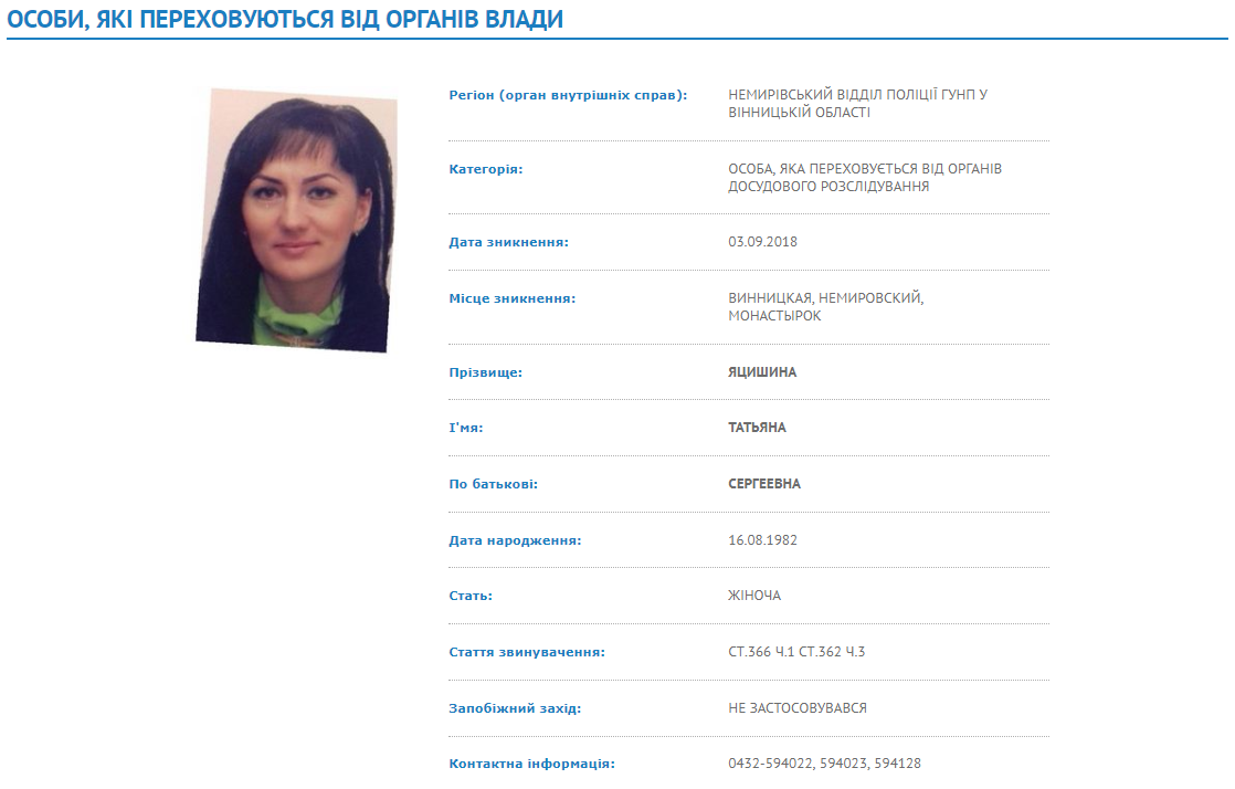 Что же касается ее дела, то с начала осени женщина объявлена в розыск как лицо, уклоняющееся от следствия. 12 сентября судья Немировского райсуда Сергей Науменко постановил задержать ее с целью привода для последующего избрания ей меры пресечения.