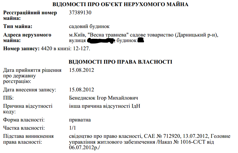 Дом, возле которого Бенедисюк отстреливался от "активистов", вместе с участком 6 соток указаны в его декларации:
