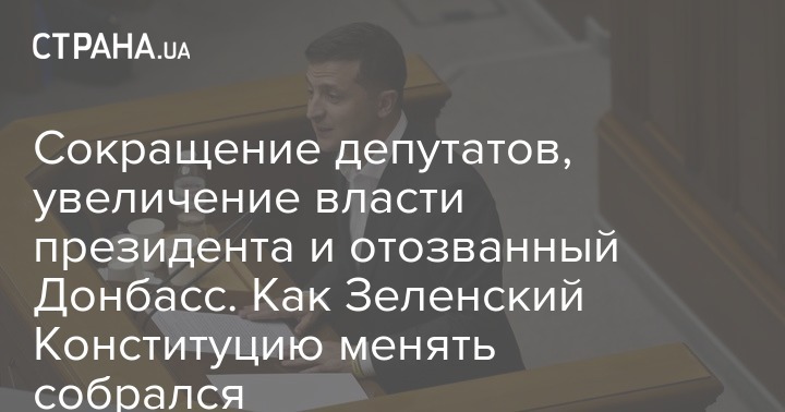 В нем, в частности, Зеленский предлагает внести изменения в статью 76 Конституции Украины, которая гласит: "Конституционный состав Верховной Рады Украины - четыреста пятьдесят народных депутатов Украины, которые избираются на основе всеобщего, равного и прямого избирательного права путем тайного голосования сроком на пять лет". По мнению президента, депутатов должно быть 300, а упоминание об избирательном праве и тайном голосовании из основного закона стоит убрать.
