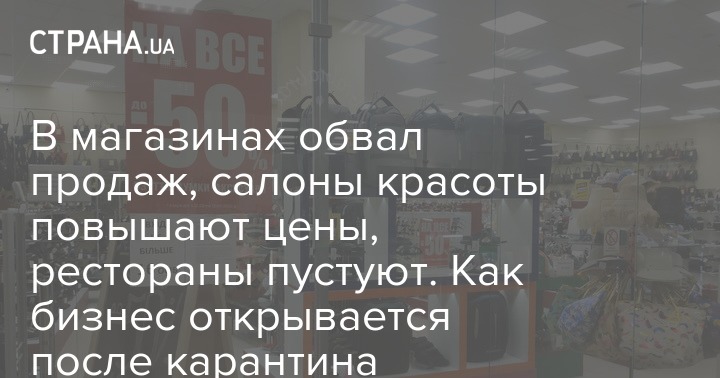 Украина постепенно выходит из карантина. С 11 мая введены послабления для ресторанов и сферы услуг. Открылись многие непродовольственные магазины. В Киеве, Львове и Черновцах торговые центры пока не работают (предположительно они могут открыться только с 22 мая), но во многих регионах со вчерашнего дня они уже доступны для посетителей.