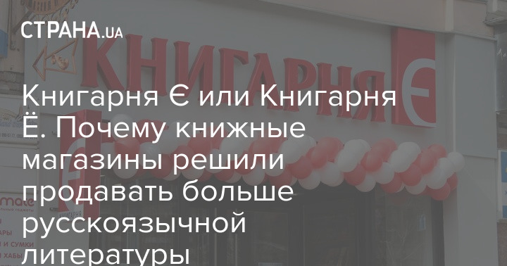 Администрация сети книжных магазинов Книгарня "Є" выступила с заявлением, что отказывается от идеи исключительной поддержки украиноязычных изданий и будет расширять ассортимент русских книг. По их словам, ситуация, которая сложилась по состоянию на 2020 год на книжном рынке, побуждает их к таким действиям.