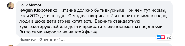 Многие родители в комментариях советуют Клопотенко самому есть свои блюда и “перестать издеваться над детьми”. Или же начинать такую реформу не с садиков и школ, а с Верховной Рады.