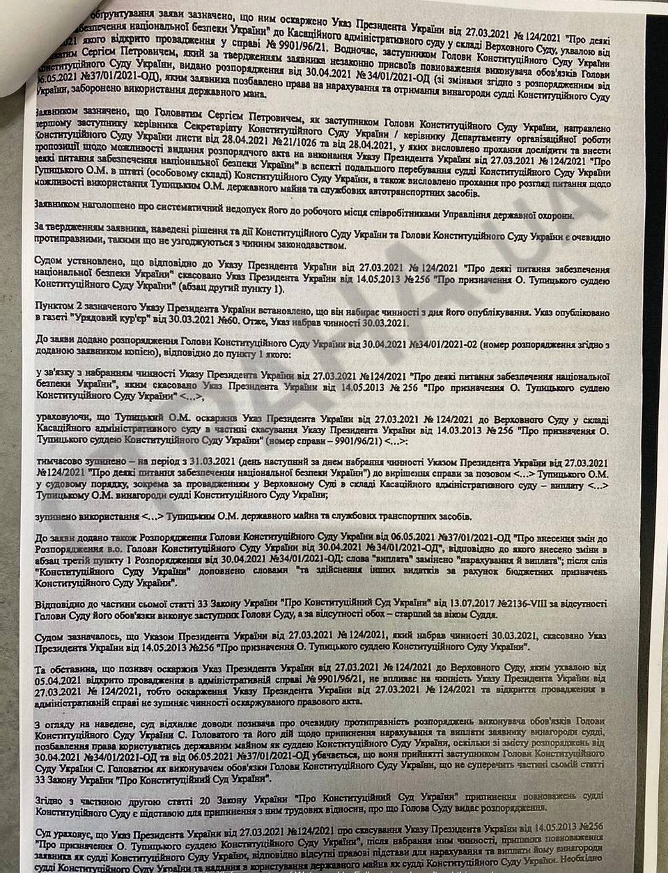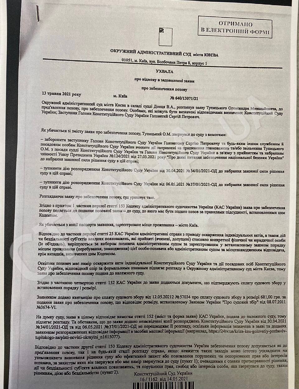 И все же, правовой беспредел продолжается. Так, 13 мая 2021 года мне отказали в обеспечении иска против Сергея Головатого (замглавы КС, который сейчас исполняет обязанности Тупицкого – Ред.).