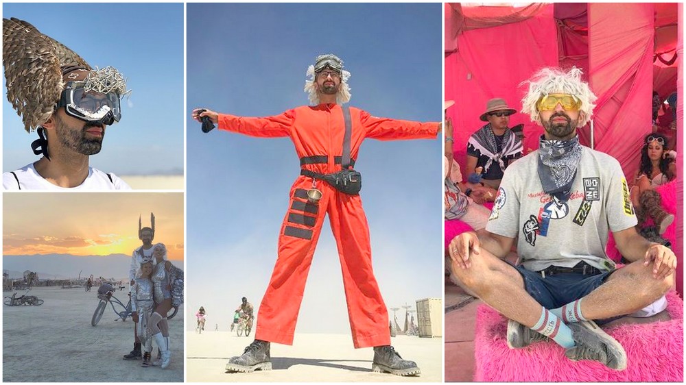 Пустыню превращают в фантастический мир. Те, кто приехал на фест, обязательно должен быть в каком-то невероятном костюме. Лещенко и Топольская успели переодеться несколько раз и продемонстрировать тематические наряды, которые создали мастера из украинской Patoka Studio. Маски с перьями изготовила Леся Патока, а парики с кристаллами - дизайнер Иван Фролов, который одевал певицу Джамалу на "Евровидение".