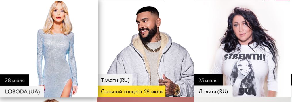 36-летняя Светлана Лобода, коллега Брежневой по группе "ВИА Гра", тоже будет на фестивале, но она еще не выступала, потому что заявлена в программе на 28-е июля.