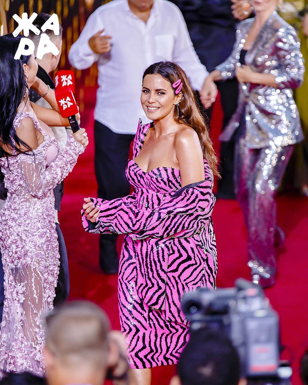 Так, среди артистов оказалась 32-летняя Настя Каменских (NK), которая недавно вышла замуж за своего продюсера Алексея Потапенко (Потап). Для мероприятия она выбрала яркое розовое платье со звериным принтом, а на концерте выступила в своем привычном откровенном костюме.