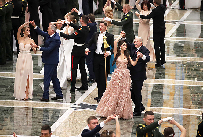 28 декабря прошлого года президент Беларуси принял участие в первом Республиканском новогоднем балу для молодежи, который прошел во Дворце Независимости в Минске. Там он станцевал с Василевич вальс