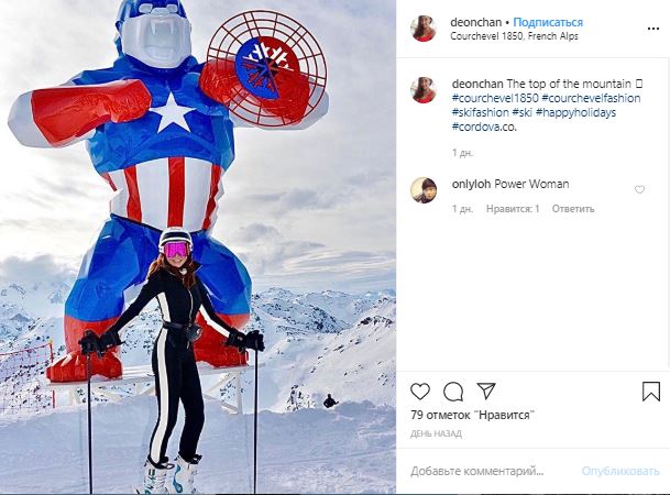 Модель, модный блогер, дизайнер (купальники и спортивные костюмы) и it-girl Наталья Якимчик (709 000 подписчиков в Instagram) в Куршевеле тоже показала свой костюм Prada Linea Rossa, как у Ярославской, только белого цвета. C собой в горы девушка взяла целый чемодан зимней экипировки. Лыжный черный комбинезон Наталья миксовала исключительно с яркими вещами.