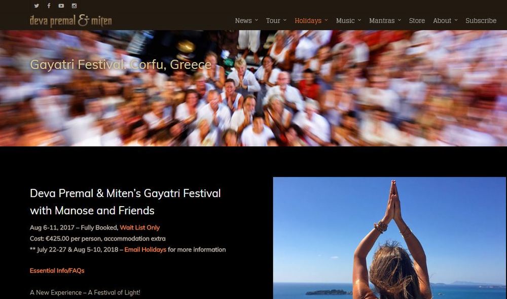 Каждый день начинается в 7.30 с тренировки по йоге, потом участники завтракают и отправляются на сессию с Дэвой Премал (немецкая исполнительница медитативной музыки в стиле нью-эдж - современных обработках), где слушают и поют мантры. В 12.30 по расписанию ланч, а с 13.30 до 19.00 - разнообразные активности: медитации, семинары, практики и отдых на пляже. а в 20.15 снова встреча с Дэвой Пермал и Митен (ее партнер, британский певец и гитарист).