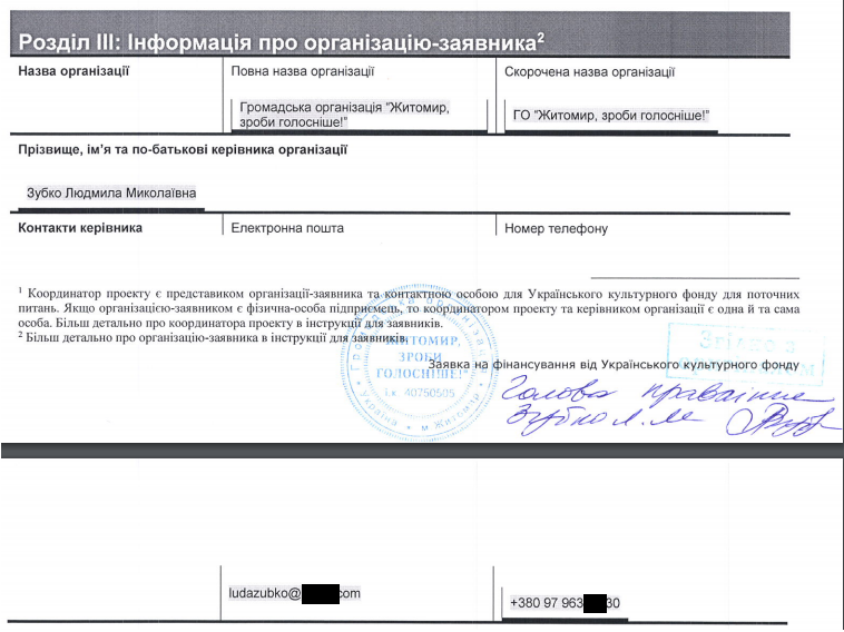 Именно Людмила Зубко указана в качестве одного из контактных лиц грантополучателя в договоре, опубликованном в системе "Прозорро":
