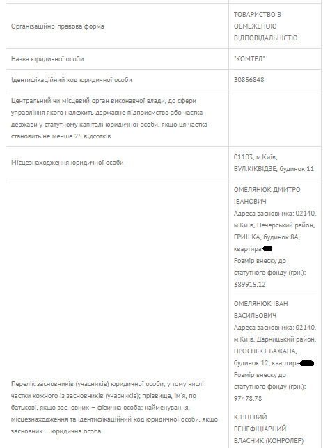 Владельцами ООО "Комтел", согласно данным госреестра юридических лиц, являются Иван и Дмитрий Омелянюки. Они же являются собственниками ООО с похожим названием – "Комтел системы вещания":