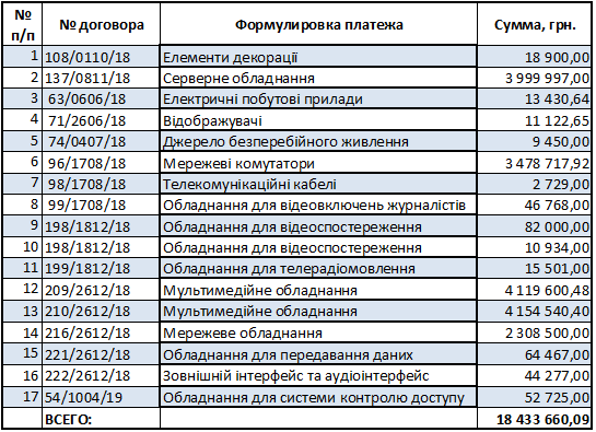 Из всех платежей за товары и услуги больше всех получило львовское ООО "Техника для бизнеса" – 7,2 млн грн. В том числе у этой фирмы за 6 млн был закуплен некий "Программно-аппаратный комплекс серверного оборудования и систем хранения данных".