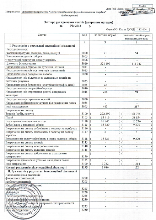 Согласно опубликованному на сайте агентства Отчету о движении денежных средств, в 2018 году оно получило "всего" 162 млн грн целевого финансирования. Из них почти половина (72,5 млн грн) была потрачена на выплату зарплат. Еще 37,4 млн в агентстве потратили на оплату товаров и услуг: