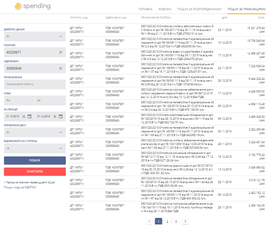 Согласно одному из определений суда по этому делу, значительную  часть из этих денег в сумме 71,3 млн грн получило ООО "Комтел системы вещания":