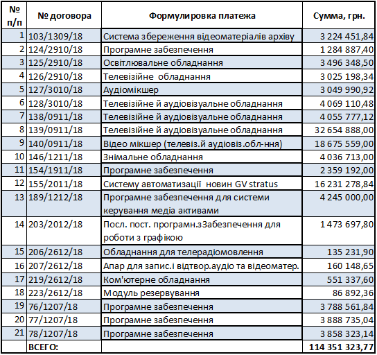 Всего МПИУ заплатило "Комтелу" в 2018 году 114 млн грн по 21 договору. "Страна" собрала сведения о суммах всех договоров, по которым в прошлом году шли эти платежи: