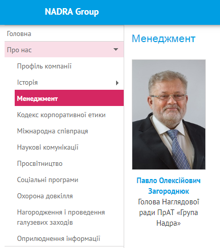 Отец нового министра обороны Павел Загороднюк - основной владелец группы компаний "Надра", и занимает в ней должность главы наблюдательного совета: