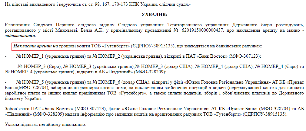 По делу уже были проведены обыски и аресты. Фабула дела изложена в одном из недавних определений Заводского районного суда города Николаева.
