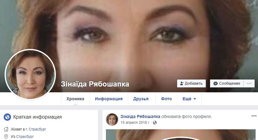 Скрин странички Зинаиды Рябошапки с Facebook