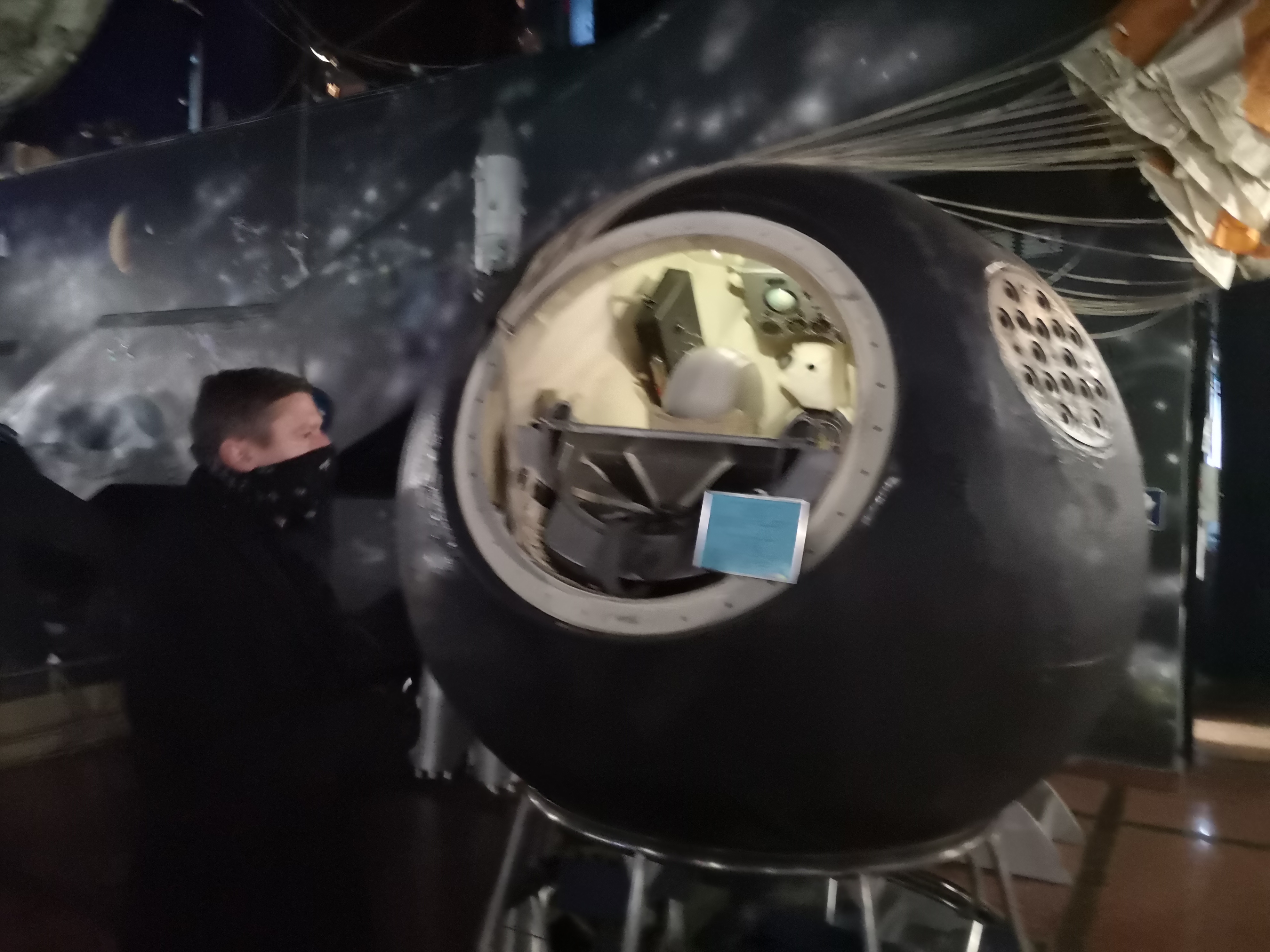 Экскурсию мне проводит мужчина, у которого вместо маски на нижней половине лице повязана черная бандана. Ожидаю узнать еще больше о разработках Королева, но вместо этого половину экскурсии приходится слушать о Холодной войне и космической гонке США и СССР – в которой последний выигрывал до момента, пока американский астронавт Нил Армстронг не сделал первый шаг по Луне.