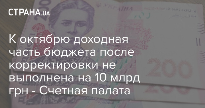 К октябрю доходная часть бюджета после корректировки не выполнена на 10 млрд грн - Счетная палата