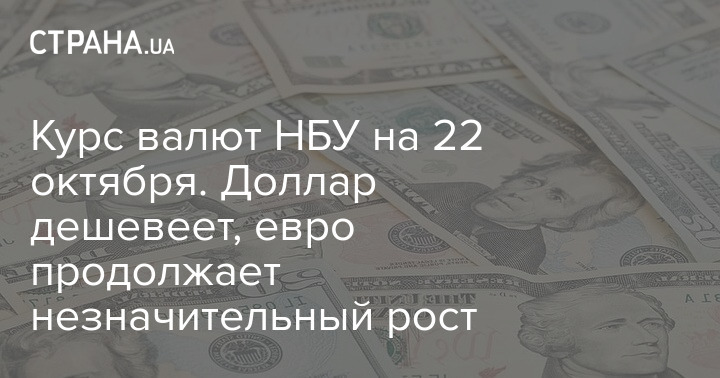 Курс валют НБУ на 22 октября. Доллар дешевеет, евро продолжает незначительный рост