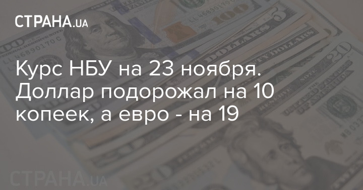 Курс НБУ на 23 ноября. Доллар подорожал на 10 копеек, а евро - на 19