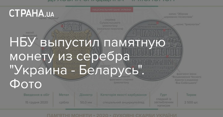 Национальный банк Украины со вторника, 15 декабря вводит в обращение новую серебряную памятную монету "Украина - Беларусь. Духовное наследие - Ирмологион".