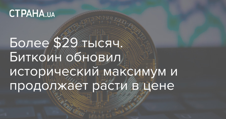 Стоимость биткоина этой ночью превысила отметку в $29 тысяч, тем самым обновив исторический максимум.