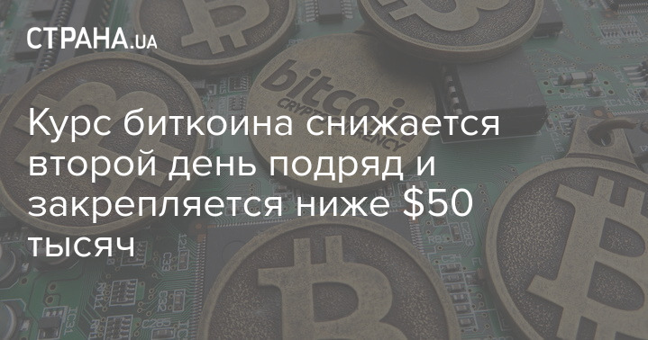 Курс биткоина снижается второй день подряд и закрепляется ниже $50 тысяч