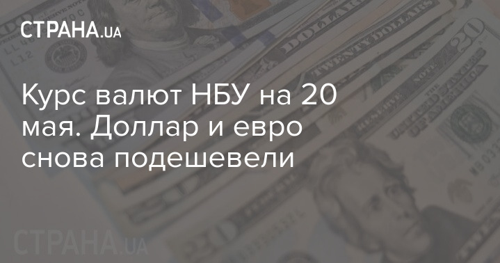 В четверг, 20 мая, Национальный банк Украины установил официальный курс гривны по отношению к иностранным валютам. По сравнению с предыдущим рабочим днем доллар и евро опять упали в цене.