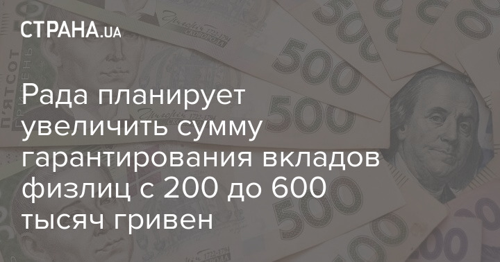 В Верховной Раде зарегистрирован законопроект № 5542-1 о внесении изменений в законы Украины об обеспечении стабильности системы гарантирования вкладов физических лиц. Он предлагает увеличить сумму гарантирования вкладов физических лиц с 200 000 до 400 000 гривен со дня вступления в силу, а с 2023 года - до 600 000 гривен.