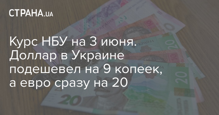 Курс НБУ на 3 июня. Доллар в Украине подешевел на 9 копеек, а евро сразу на 20