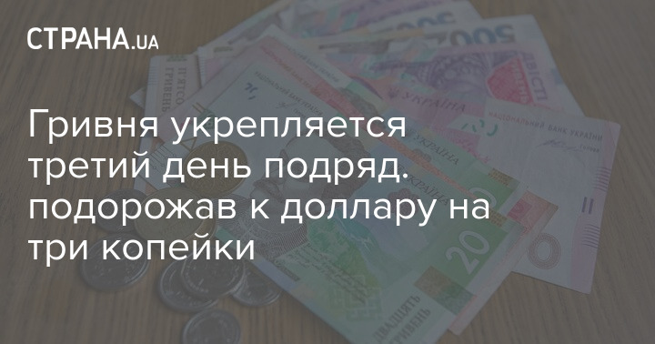 Гривня укрепляется третий день подряд. подорожав к доллару на три копейки