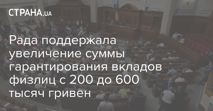 В Украине планируют увеличить с 200 тысяч гривен до 600 тысяч гривен гарантированную сумму возмещения вкладов в банках. Соответствующий законопроект Верховная Рада приняла за основу на заседании в среду, 30 июня.