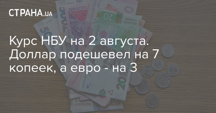 Курс НБУ на 2 августа. Доллар подешевел на 7 копеек, а евро - на 3