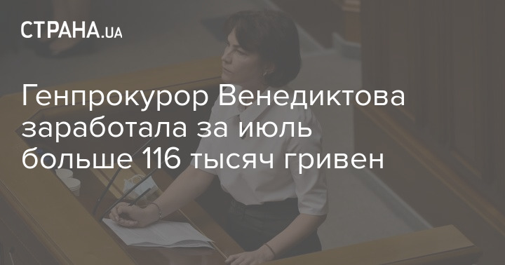 Генпрокурор Венедиктова заработала за июль больше 116 тысяч гривен
