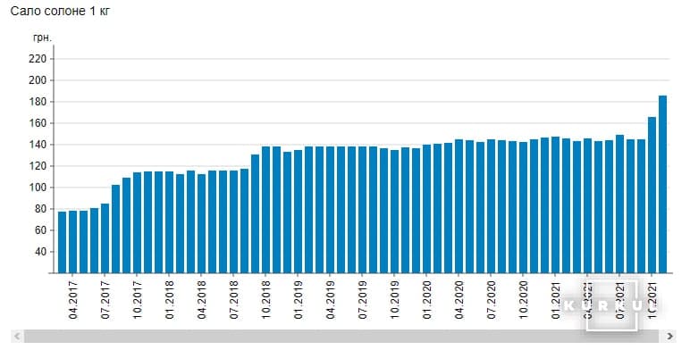 "Значительное подорожание соленого сала произошло еще в октябре, когда стоимость стремительно выросла на 20 грн/кг, или 13%. С октября цена выросла еще на 20 грн/кг, или на 11%", - говорится в сообщении.